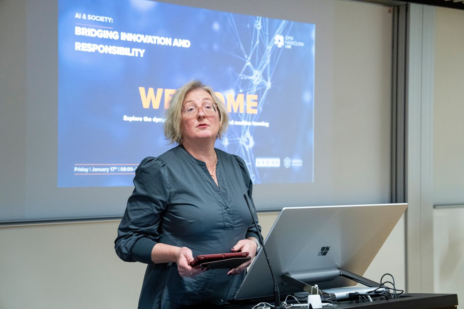 Þann 17. janúar stóð Opni Háskólinn við Háskólann í Reykjavík fyrir ráðstefnunni AI & Society: Bridging Innovation and Responsibility í samstarfi við EDIH – Miðstöð Stafrænnar Nýsköpunar, CADIA – Gervigreindarsetur HR og IIIM – Vitvélastofnun Íslands. Á ráðstefnunni voru samankomnir leiðandi sérfræðingar og fagfólk til að ræða áhrif gervigreindar á samfélagið.