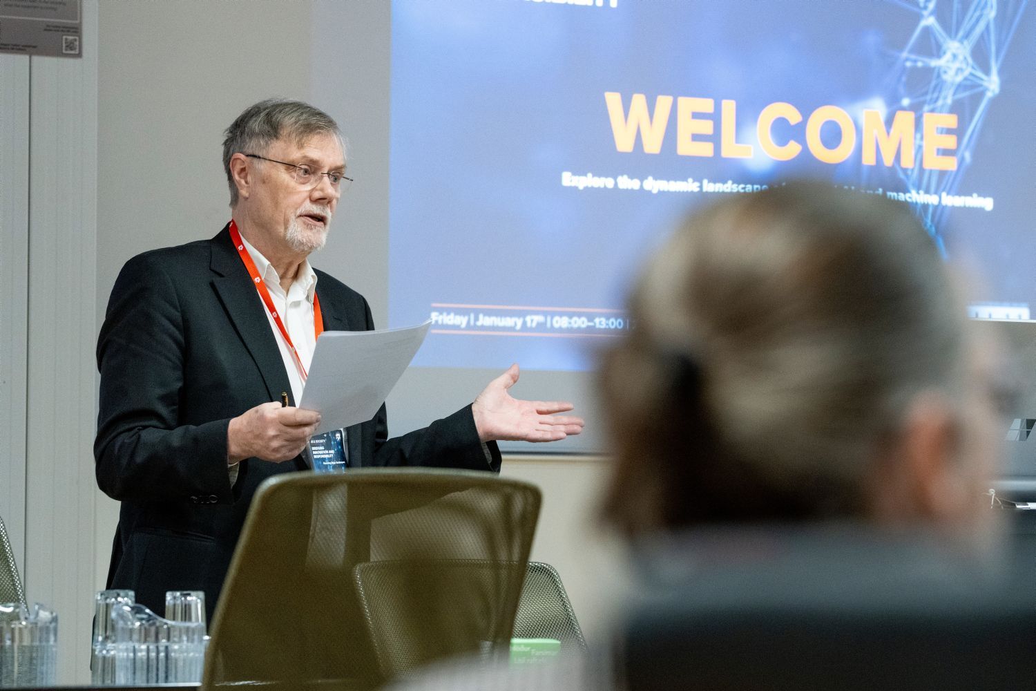 Í upphafi dags bauð Ragnhildur Helgadóttir, rektor Háskólans í Reykjavík, gesti velkomna og fylgdi Logi Einarsson, menningar-, nýsköpunar- og háskólaráðherra, því eftir með ávarpi þar sem hann lagði áherslu á einstök tækifæri og áskoranir Íslands í heimi hraðrar þróunar gervigreindar. Lykilræðuna flutti Serge Belongie, forstöðumaður Pioneer Center for Artificial Intelligence í Kaupmannahöfn og prófessor við Kaupmannahafnarháskóla, þar sem hann fjallaði um möguleika og takmarkanir á sviði gervigreindar.