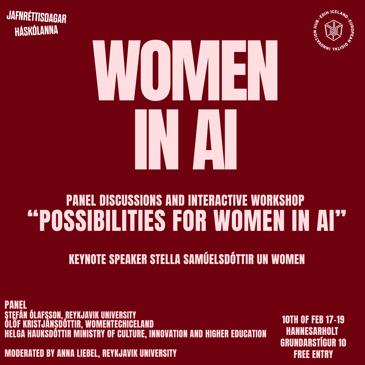 Miðstöð stafrænnar nýsköpunar á Íslandi (EDIH-IS) býður til fyrsta undirbúningsfundar fyrir þver-evrópska vinnuhópinn Women in AI þar sem markmiðið er að skapa öruggt og hvetjandi rými fyrir konur sem starfa með, eða hafa áhuga á, gervigreind og stafrænum lausnum.